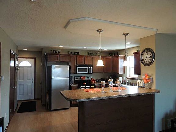 Better than new! Gorgeous and rare floorplan, this stunning condo is equipped with 2 master bedrooms, large great room and kitchen with breakfast bar, sleek cabinets, and wood laminate floors. Step outside to your rear patio or front porch. Enjoy the privacy of an end unit and this special community with walking trails and pond. Lower level is ready to finish! Don't delay!