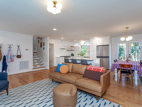 Classic mid-century modern style meets today's lifestyle in this beautifully updated home, tucked away on a quiet cul-de-sac. Thoughtfully opened up, the main level flows effortlessly into a stunning modern kitchen featuring a large quartz island perfect for gathering, sleek tile backsplash, gas range, and stainless steel appliances. Original hardwood floors throughout the main level and upstairs bedrooms honor the home's timeless design. Downstairs, enjoy a spacious rec/bonus room plus a must-have home office—ideal for work, play, or guests. Step outside to a large, flat, fully fenced yard with patio, fire pit, play set, and a generous storage shed. Whether you're hosting friends, gardening, or seeking a peaceful retreat, this outdoor space truly delivers. A rare blend of character, comfort, and functionality—this is mid-century living at its best. Conveniently located to downtown Raleigh, shopping and parks. Roof replaced in 2023 with new roof overlay. Contact Agent or see attachment for other great updates!