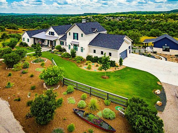 One of a kind farmhouse sitting high above the Pedernales River. Panoramic views surround this 5 acre estate nestled in the quiet and gated community of Fall Creek Estates. So many custom touches on this home starting with the floor plan, designed by Vanguard Studio of Austin, that embraces the old German farmhouse with large gathering areas, cozy fireplace spots, large covered and screened porches, spacious kitchen, and a fantastic laundry- mud room with center island and dog shower. Many reclaimed materials were built into this design with old doors from the french quarter, long leaf pine flooring used as ceiling treatments, lockers in the mud room, and Old Chicago brick. Amazing lighting package thought with rustic, modern, and traditional styles combined. No carpet in the home with a mix of white oak-pine floors, stained concrete and tile. Detached Pool house built with over 438 sqft that is heated and cooled. So many possibilities with this!