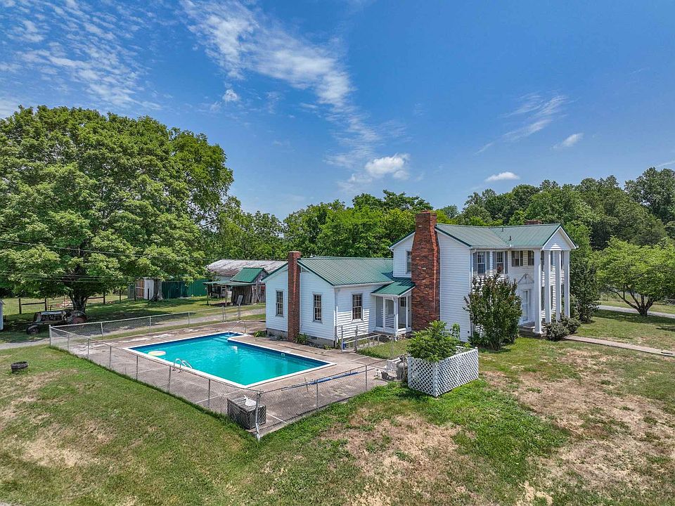 Beautiful home on a hill! Historic farmhouse that has had modernization. 24x23 covered porch, 37x16 pool, 25x23 carport, 30x50 shop and 10x10 shed. Large master suite and open concept layout. Large washroom. Don't miss barn and pasture behind house. Fenced in area also behind home and a chicken coop!
