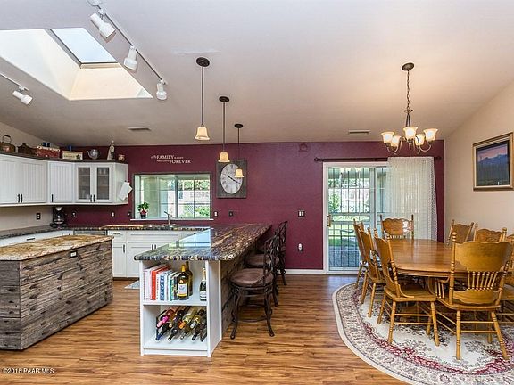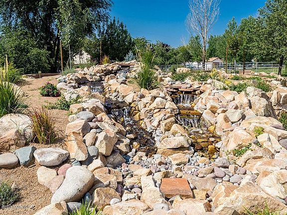 Rare opportunity for large 3 acre parcel in town with horse privileges. Stately corner location with an abundance of fruit trees and mesmerizing park-like water feature. Two street circular access thru covered portico. 30 GPM well for landscape watering, swimming pool with city water back up. Fully remodeled 4154 sq. ft, single level living on main floor with 3 master suites + 4th bedroom. 4 addt'l bedrooms above attached 2000 sq ft., 4-car garage with no load bearing walls, perfect for converting to wide open space. Detached 2000 sq ft workshop/garage. RV parking w/electric, water and sewer hookups. Solar lease, avg. electric bill under $200/mo.