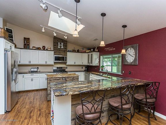 - Ceiling Fan(s), Eat-in Kitchen, Kitchen Island, Raised Ceilings 9+ft, Smoke Detector(s), Wash/Dry Connection, Counters-Granite, Fireplace-Woodburn, Garage Door Opener(s)