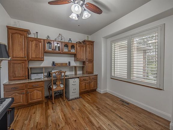Welcome to your new home in Monte Vista Estates, where this meticulously cared for home awaits. Situated on over half an acre with irrigation water and an oversized 2 car garage. The residence features a split floor plan with a spacious primary suite paired with a walk-in closet, along with two guest bedrooms and an office/den with built ins. Upon entering, you'll immediately feel at home with warmth and tranquility. The living room features an inviting fireplace, connecting to the generous kitchen with granite countertops, stainless steel appliances, and a walk-in pantry. The home also has a water softener system. Step outside to discover the true gem of this property the backyard with a patio perfect for entertaining and a garden area. The exterior is surrounded by lush greenery and boasts San Juan mountain views in the front yard. Prime location close to schools, shopping, and the Recreational Center. Don't miss your chance to make this your forever home. Schedule your private showing today and experience Monte Vista living in Montrose, Colorado.