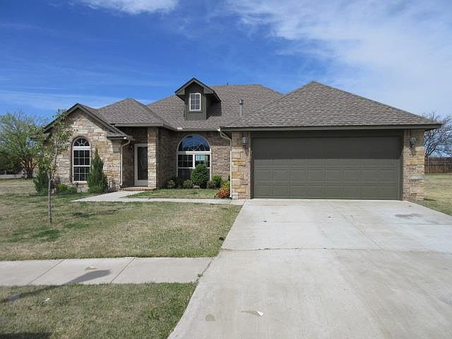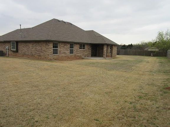 Dead-end, extra large cul-de-sac lot that backs up to Mustang Valley Elementary! Home has open floor plan, with a corner fireplace in the living room. Covered patio with large backyard. Kitchen has granite counter-tops, stainless steel appliances and wood cabinets. Attractive Master suite with walk-in closet and private bath with tub and shower.