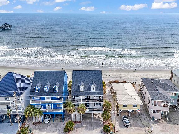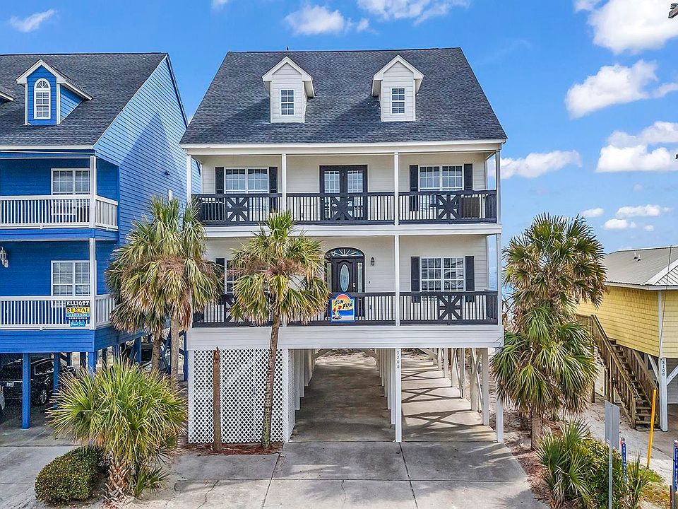 Welcome to your coastal dream home! This stunning raised beach house, located just moments from the iconic Cherry Grove Pier, offers the perfect blend of elegance and beachside charm. With 6 spacious bedrooms and 6.5 beautifully appointed bathrooms, this home is ideal for both large families and those who love to entertain. Step inside and be greeted by an abundance of natural light that floods the open and airy living spaces. Recent updates have modernized the home while preserving its timeless appeal. The main living area features a flowing floor plan that seamlessly connects the living room, dining area, and kitchen, making it perfect for gatherings. Each bedroom boasts ample space and its own private bathroom, providing comfort and privacy for all guests. Two suites are true retreats, offering a serene space to unwind with a luxurious en-suite bath and private access to a balcony. Enjoy the coastal breeze from multiple outdoor spaces, including a large covered porch and open decks, where you can savor morning coffee or evening sunsets. The raised design not only provides stunning views of the Cherry Grove pier, but also offers added protection and space underneath for parking and storage. Additional highlights include updated fixtures, modern appliances, and stylish finishes throughout. Whether you’re looking for a full-time residence or a vacation getaway, this home offers the perfect blend of convenience and tranquility. Don’t miss your chance to own this beautiful beach house near Cherry Grove Pier. Schedule a viewing today and start living your coastal dream!