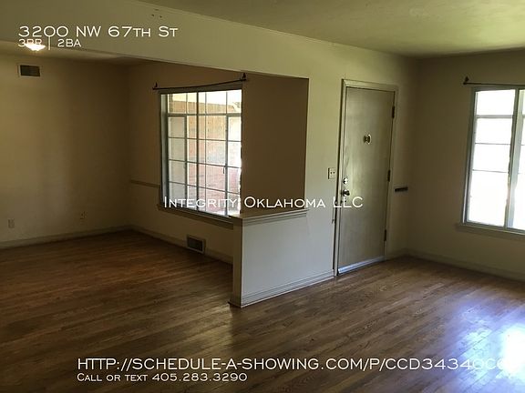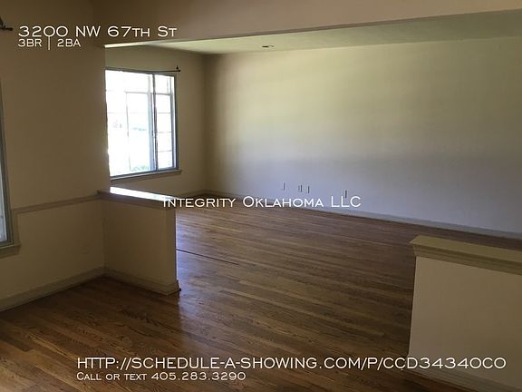 Charming 3 bedroom, 1.5 bath home in a great location - a short walk or bike ride to Lake Hefner! Close to the many shops, restaurants, and grocery stores along May Ave. Featuring wood vinyl plank flooring, neutral paint colors, large windows to let in natural light, and a living room that is open to the dining room! The kitchen includes a refrigerator, range, and dishwasher. The garage has built-in storage and a work bench. There are connections for a washer and electric dryer in the garage. Fenced in backyard with a large covered back porch and outdoor fireplace! Oklahoma City School District. Rent is $1100 per month and deposit is $1100. Tenant is responsible for utilities and yard maintenance. Pets not accepted. To schedule a showing and apply online, visit integrityokc.com.