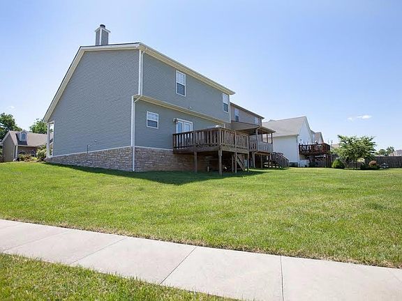 Beautiful home one corner lot with sage green siding, stone skirt and brick fascade. Upon entering you will quickly notice the open feel and 2 story great room with eye catching stone fireplace,all new VCT waterprrof laminate on 1st floor. Adjoining is nice kitchen with new granite, abundance of cabinets,and all appliances.Large master suite on 1st floor with private bath and walk in closet. Upstairs you will find 3 other bedrooms and full bath, laundry and flex room that could be used as home office, nursery, or dressing room. Deck off rear of home is perfect for BBQ's! Seller/builder has added 2 windows to great room for more light, all new flooring, carpet , paint and lights thru out. New granite counter. Will sell quickly!! Dont let pass you by!