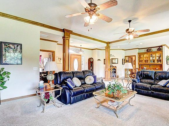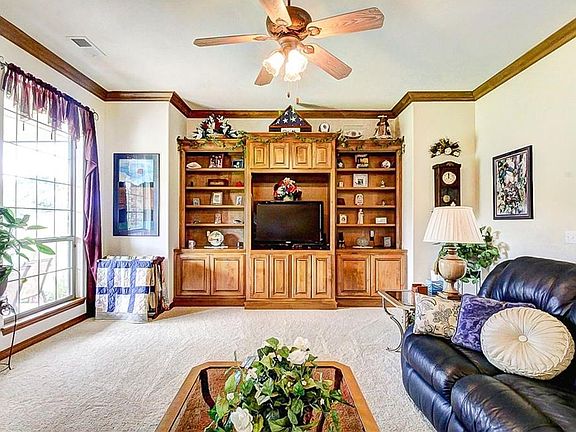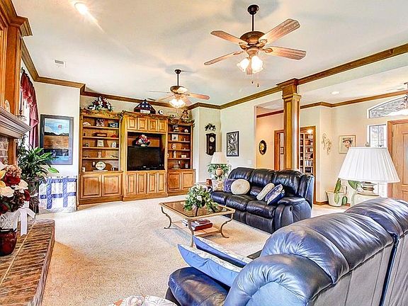 This quality constructed home has 6" walls, manablock system, 2 water heaters, large dbl pane windows, oversized garage with storm cellar & storage. The beautiful craftsmanship is apparent. Tall oak cabinets, solid surface counter tops, built in appliances, center island, breakfast bar, large walkin pantry exemplifies the "perfect" kitchen. This very open floorplan makes entertaining a breeze. Step in the front door into the huge living room with soaring ceiling, ceiling fan, beautiful fireplace with builtins and huge windows. The formal dining area has builtins, & a large breakfast area with beautiful windows. The master suite has 2 walkin closets, whirlpool tub, large shower, dbl vanities. The study has builtins & a door to the master bedroom. The two bedrooms are large with ceiling fans & nice closet. The full bath has tub/shower and storage. The utility room is large with storage & ironing board. The outside is breathtaking with landscape, walks, sprinkler system.
