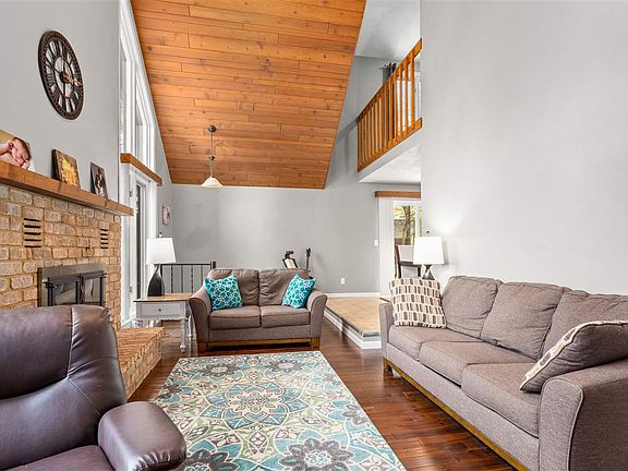 Step into the great room w/wood fireplace & cathedral ceilings. 2 bedrms & a full bath on the main, walk in closet/locker area & fully remodeled ½ bath. Master suite up w/sitting area overlooking the living rm, walk-in closet w/barn door, full bath, 2 addl closets, skylight & lg bedroom. LL W/game-room, chalkboard wall, ½ bath & a great room with a wet bar & wine rack. Painted concrete floor. New paint & carpet throughout. New HVAC, H2O heater, newer roof & new wood flooring on main. Privacy on a cul-de-sac w/no backyard neighbors could be yours. Seller requests no showings until 11/09/19