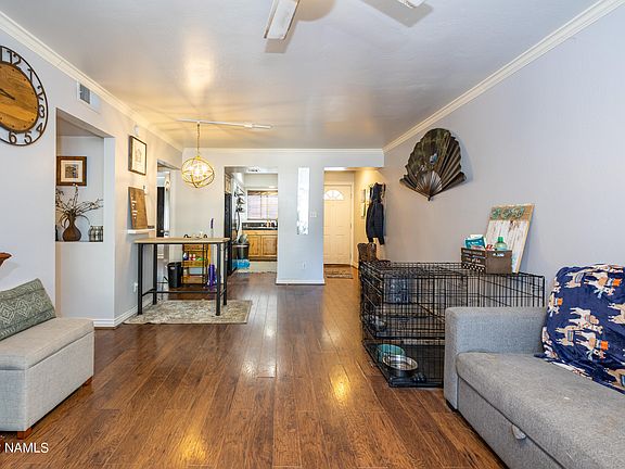 BEAUTIFUL 2 bedroom, 2 bath, move in ready, ground floor condo! It is centrally located — close to NAU, shopping, trails, and restaurants. This bright ground level condo features crown molding and attractive vinyl plank flooring. Granite countertops and beautiful cabinetry enhance the modernized kitchen. Both bathrooms offer beautiful granite countertop vanities. Unit includes a vented stackable washer/dryer and all kitchen appliances The HOA covers water, sewer, trash and internet. There is a community room, gym, BBQs & picnic tables, and laundry room on site as well as a washer / dryer combo in the unit!.