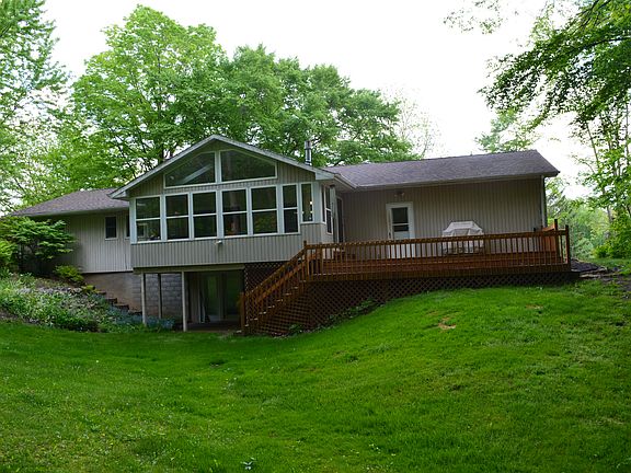 Beautiful setting and home in Pointe Royale Subdivision just minutes from town. This home offers a full walkout basement with large finished open area and fireplace. Open Kitchen/family/dining area with fireplace. 12x22 sunroom with cathedral ceiling, skylights, ceiling fan, fireplace, plus large deck to enjoy the nature in the backyard. Mud room, formal living room, and laundry room. Unfinished area in basement along with several closets gives tons of storage space. This home has natural gas heat, central air, whole house fan, water softener, township water, and a well for outside watering. It also has a 2 1/2 car attached garage with storage and workbench, and is wired for a generator hook-up. The deck is reinforced and wired for a 220 volt hot tub hook-up. New septic tank in 2014, new flooring 2012, and new roof shingles in 2008. Tiered/sloped landscaped area in rear. Enjoy nature out your back door!