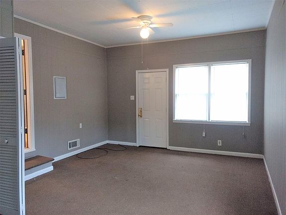 Home has had some detailing to include paint and new tiled back splash. Kitchen open to dining room. Nice corner lot with wide side entry driveway. Covered carport or patio. Storage building in rear. What was a rear entry garage has been converted into a den and laundry room off of kitchen.