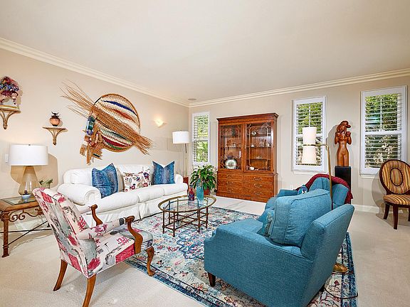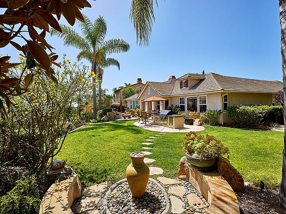 FANTASTIC LA COSTA RIDGE EXECUTIVE ESTATE! 3200 Sitio Montecillo, Carlsbad, California 92009 Stunning single-level home in the gorgeous gated community of La Costa Ridge. Available June 1st! This home has everything you could want including lovely views! Resort-like backyard with a covered patio, built-in barbecue with seating for 6 at the bar and refrigerator. Beautiful sitting area around a cozy fire pit, fountains. Private hot tub with service included. Fruit trees including orange, lemon, lime, and keylime. Front covered patio and sitting area. Fantastic kitchen with a 6-burner gas Thermador stove, warming oven, stainless steel top-of-the-line appliances. Pantry plus butler pantry and wine refrigerator. Granite countertops. Wonderful wood floors and carpet in bedrooms. Plantation shutters and crown molding. Dual vanities in master bath Zoned central air conditioning plus ceiling fans throughout. Cozy fireplaces in the family room and outside on the beautiful interior courtyard. Solar panel energy, owned. Electric car charging station. Whole house water purification system, tankless water heater. Large laundry room with a sink and plenty of cupboard space. Refrigerator, washer, and dryer included. Large 3-car garage. Gardening services included weekly. Dogs may be considered, no cats please. Tenant pays utilities