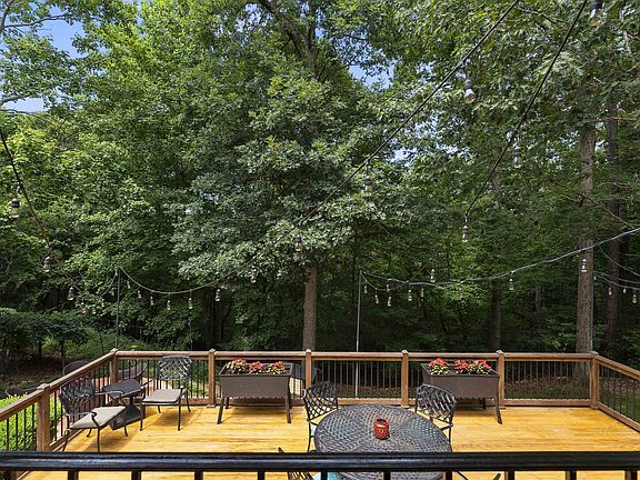 BEAUTIFUL ALL Brick custom home tucked away on a wooded cul-de-sac in Ivory Hills. 1st floor Primary BR PLUS 1st Fl 2nd BR, large rooms, living room/office, 2nd floor bonus room plus a 3rd floor theater room (with seating and equipment remaining), 3 car garage, oversized deck plus a patio perfect for a fire pit, fenced rear yard, and a covered rear porch all overlooking acres and acres of wooded area. New roof in 2023, hardwoods refinished and some interior painting in recent years as well. Neighborhood pool option at the Village of Winchester pool. Just 1.5 miles to the new I-540 interchange on Bells Lake Road. Close, but not too close!! Just 4 miles to the new Costco on 401S, and tons of shopping options including Crossroads within a 15 minute drive.