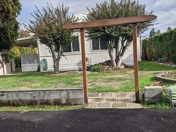 Potential!! Solid home in good condition just needs your special touch. Some updating has already been done with newer electric, LVP, bathroom tile, furnace coils & AC/heat pump unit. Large shop area in front & garden shed in the carport offer ample storage. Beautiful yard with water feature, stream view, and direct access to walking path. All-age park features club house, pool, walking trails, and more. Home is being sold AS-IS, and will need a new roof. Park approval required.More photos coming soon!