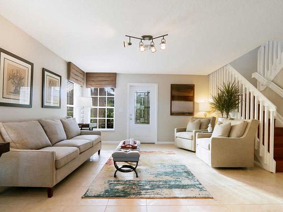 You have got to see this gorgeous home! Super immaculate --original owner/sellers have taken great care of this 3 bed 2.5 bath house, situated with wide lake views and sunsets from the very private pool patio. Large granite kitchen, tile and laminate flooring throughout. Lots of natural light. Community offers 24 hour manned security, fitness center, clubhouse, lawn care, community pool jacuzzi, playground, tennis courts and basic cable.