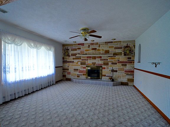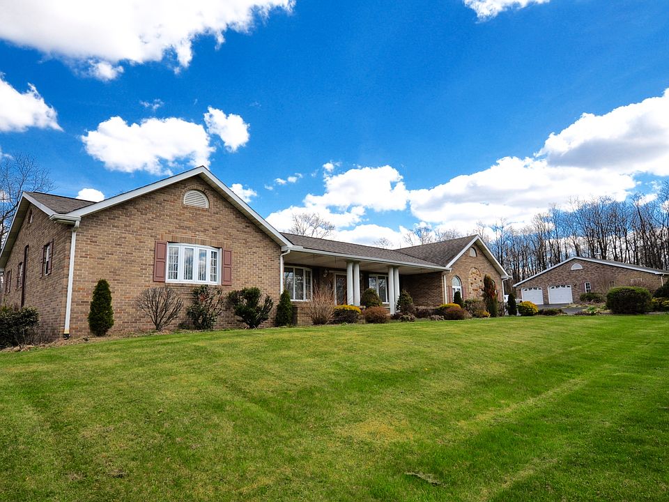 Wide open spaces!! This beautiful brick sprawling rancher situate on 5.48 acres in the country is just what you've been waiting for! You will not run out of room in this house; huge eat in kitchen with solid oak kitchen cabinets, composite countertops, tile floors and skylight, oak raised panel interior doors and woodwork, decorative stone fireplace in living room, 3 large bedrooms and 2 full baths, 2 car attached garage with 1/2 bath, 48x24 detached garage with 3 more garage bays, workshop and 1/2 bath; house is heated with an oil hot water boiler and supplemental coal stove in the basement, shop and detached garage are heated with coal fired hot air furnace; both the house and shop are equipped with central cooling! This is the single level home in the country you have been waiting for ... see it today!!