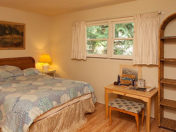 Street level 2718 sq feet, lower level walkout basement, 2400 sq ft finished, plus laundry and shop area. Fenced yard opens to Cornwall Park. LOCATION! Spacious mid-century sprawling ranch style with 65 acre Cornwall Park through your back gate. Perfect for shared living, extended family, & entertaining. Hiking, biking trails & tennis in Cornwall Park outside your gate, yet convenient to downtown, mall, and medical center. Great family neighborhood, but EZ walk to Haggen's grocery, restaurants, and craft beer hall. Street level house has 5 bedrooms (one used as big office-library with builtin shelves, another used as smaller office). Big remodeled kitchen with kitchen deck and large pantry. Bright remodeled bath with tub, shower, and double toilets. Great room with view of park, wood burning fireplace and several skylites. One of the bedrooms is part of an adjoining suite with light filled sitting room, bathroom, and separate entrance. Garden level finished daylight basement has walk out into huge DOUBLE LOT, landscaped yard, bbq patio, and additional parking area. Garden level has 2 bedrooms, fireplace, and a wet bar! House has efficient newer radiant central gas furnace, 50-year roof, cedar construction, 3 decks, and hot tub. Layout is perfect for Airbnb possibilities. Lower level also has laundry, shop, and hobby room/work shop with separate entrance. Currently used as a daycare home. Available to show on weekends only.