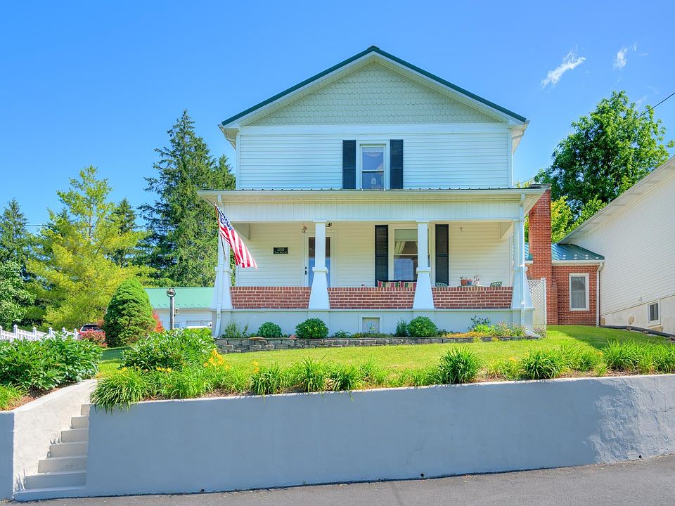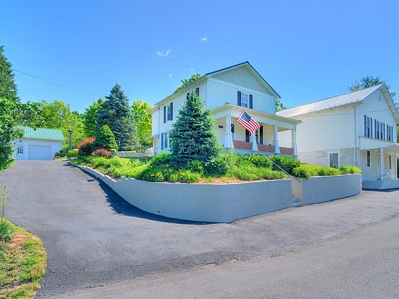 Impeccably maintained farmhouse with privacy and well over 6000 square feet of additional dry storage or hobby space. This beautiful home is attached to a former general store with an expanse of finished space with hardwood floors, copper tile ceilings and trim. It is truly incredible and perfect for a dance or art studio, home business, home-school cooperative, or shop space. The home is well landscaped with a two car detached garage, new roof and heat pump with gas backup, hardwood floors, paved driveway, insulation has been windows, and some exterior doors have been updated. Convenient to Blacksburg, Christiansburg, and Radford. This is an amazing home you have to see to appreciate.
