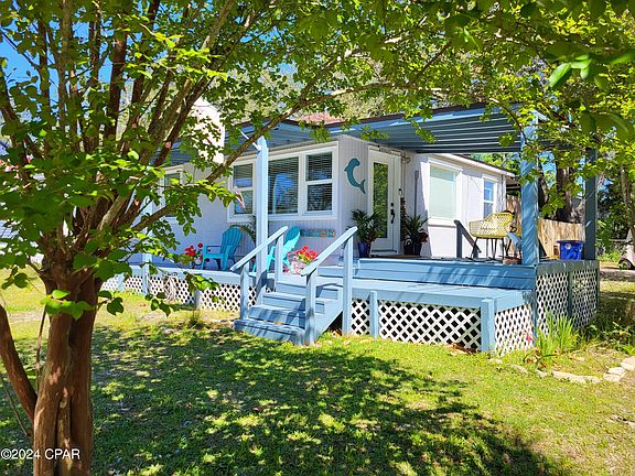 This spectacular Bungalow, in Historic St. Andrews, is on Lake Huntington and comes with its very own dock! Jump in your boat and have a 5-minute boat ride to Shell Island or drive your golf cart to some of the finest restaurants and shops in St. Andrews! This property is quite the gem! There is a main house, a cottage and a shed that shares the adorned courtyard! From the main house, there are views of the lake from the kitchen, living room, dining room, master bedroom and one of the guest bedrooms. Not to mention, the house has been completely renovated, from a new HVAC, updated electrical, plumbing, a tankless water heater, a water filtration system, plus new LVP flooring throughout. Some other updates include quartz countertops, new appliances, new cabinets, new granite composite sink and a kitchen island! This house has also been painted from top to bottom and has all new lighting! Even though this 3 bedroom, 1 bath bungalow has been updated, it has not lost its historic charm. The wainscoting, the archways, doorways and some of the original doorknobs keep it true to form! Every last detail has been thought of including the absolutely adorable cottage, from its own sitting porch to the queen size bedroom and the full bathroom! You can get creative! This could be used as guest quarters, an AirBnB for the fabulous St. Andrews area, it could be rented to traveling nurses since it is in close proximately to several hospitals or it could be used as an office! This space is limitless! There is also a nice sized shed for all of your storage needs that is insulated and houses a sprinkler system. The house, the cottage and the shed all have new roofs. The best feature of all is the dock on the lake, which has Gulf Access! There have been many dolphins spotted with their young in Lake Huntington. They have been seen quite frequently teaching them foraging techniques! This property has it all! Nearly a brand-new house, a possible investment opportunity, water activities, wildlife and the bustle of a vibrant community! This is a must see!