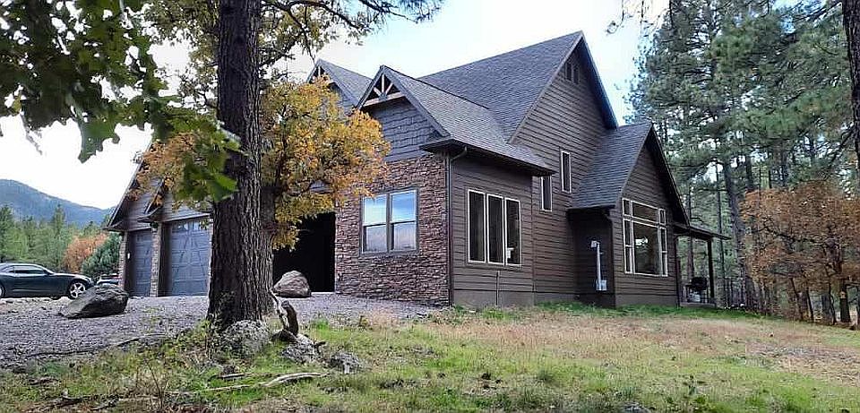 If location is everything, this home has it all. Welcome to the best of both worlds with a property that borders national forest on two sides and has a mature oak grove in front. Surrounded by nature and wildlife and still only 5 minutes from town with all city utilities, this home is like an oasis in the Highland Meadows golf course community. You can hike or ride ATVs for miles from the back door. Situated on a quiet cul-de-sac, the home has large outdoor living spaces with gorgeous natural light in every room coming through abundant windows that bring nature inside. The master bedroom with en suite on the main floor has a walk-in closet. The master bathroom has a separate shower and jetted tub and a turquoise inlaid mesquite vanity. Downstairs there is also a separate office, large laundry room/mud room and open kitchen-living room combo. A formal dining room and eat-in nook are on either side of the kitchen. The upstairs has three large bedrooms with views, a full bathroom and a loft upstairs. The home is well laid-out with smart living flows and heaps of closet space. There is a partially heated driveway leading to a two car attached garage and even an outdoor storage building.