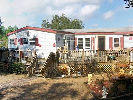 IF YOU'RE LOOKING FOR PRIVACY & SECLUSION, THAN THIS ONE IS FOR YOU!! TRIPLEWIDE 3/2 MANUFACTURED HOME ON 4.75 ACRES. OPEN FLOOR PLAN HAS LARGE EAT IN KITCHEN W/ISLAND AREA, WOOD CABINETS, BUILT IN DESK AND SLIDERS TO 44x11 WOOD DECK. LIVING AND DINING AREA'S WITH WOOD FLOORS AND VAULTED CEILINGS, SPACIOUS MASTER SUITE HAS FRENCH DOORS, 2 WALK IN CLOSETS, GARDEN TUB BATH W/DOUBLE VANITIES & WALK IN SHOWER. 18x10 UTILITY ROOM HAS BUILT IN CABINETS W/DOOR TO BACKYARD & 10x8 WOOD DECK, NEW A/C UN IT & DUCT WORK IN 2008, WATER SOFTENER AND 20x12 BARN/WORKSHOP. VERY PRIVATE 4.75 ACRES WITH TREES AND ZONED AGRICULTURAL, BRING THE HORSES!!!