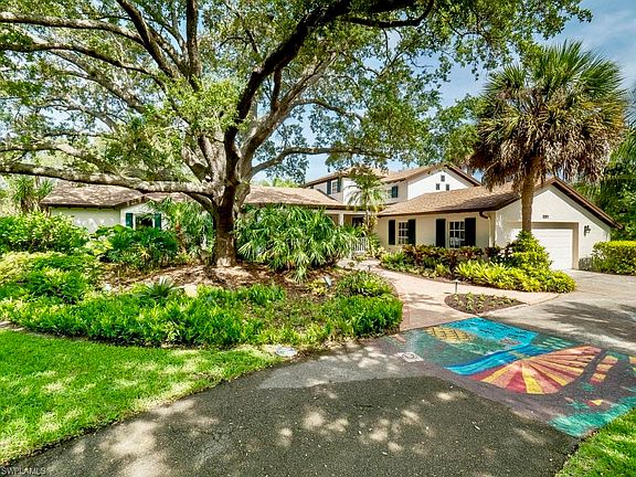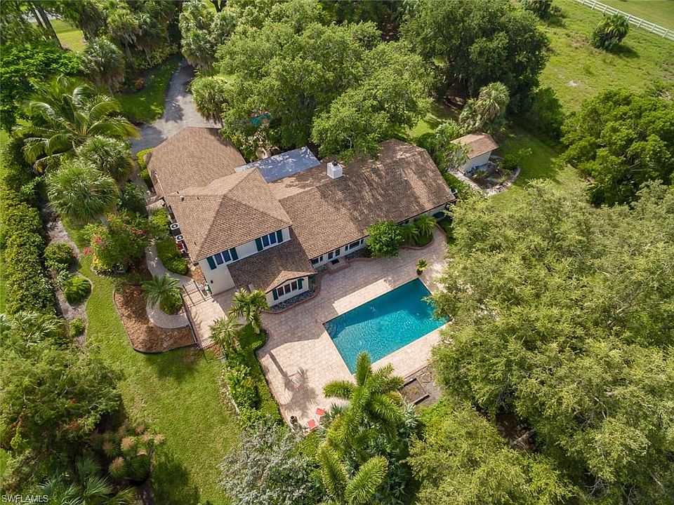 2.32 Acres - This is the home that has hosted many weekend gatherings with family & friends! Splashing & fun around the 32' pool, laughter while playing yard games, and the joy of toasting milestones while grilling & chilling in this country setting that offers easy access to all the NAPLES AMENITIES you value. No cookie-cutter style here, this home is welcoming, imaginative and offers unique character & quality craftsmanship. Rich African mahogany wood flooring graces the main living areas & 1st floor master bedroom, vaulted ceilings complemented by wood beams are notable throughout the 1st level, as are details including casement windows, wood-burning fireplace & custom built-ins. The well-designed kitchen offers custom cabinetry, travertine backsplash, SS appliances, a wine cooler, and a propane cooktop. The outdoor environment is equally magical, notable from the moment you arrive at the circular drive. Majestic oaks, meandering walkways, mature fruit trees & native plants create an environment of simplicity that offers room for your personal enhancement if desired. Grow your own vegetables, raise chickens, add an outbuilding or guest house. NEW ROOF. VIEW VIDEO! Top Schools!