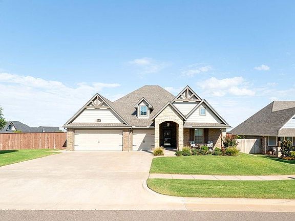 Conveniently located just 7 minutes from I-35, you’ll have easy access to all the best of Edmond and Oklahoma City, making commuting and exploring the metro area incredibly convenient. This home is conveyed with full privacy fence, additional concrete, full home rain gutters, Rainbird underground irrigation system, full home blinds, storm doors, engineered hardwood floors and new carpet!