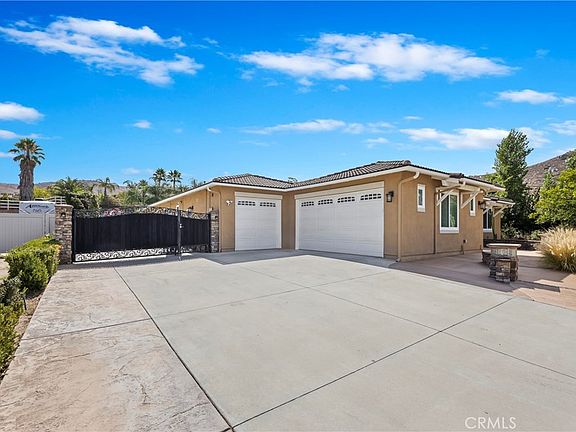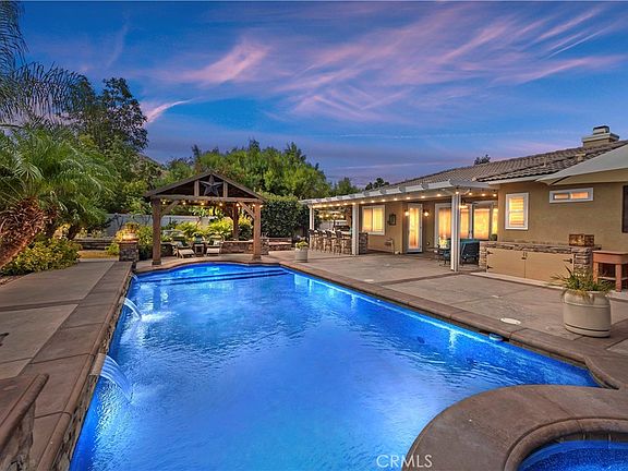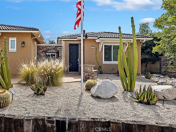 Welcome to your own resort-style home! This absolutely gorgeous single-story ranch home was entirely remodeled in 2021. Luxury vinyl plank flooring, Anlin double pane vinyl windows, & 4" Norman Clearview custom shutters add a touch of elegance throughout. Custom cabinetry & quartz countertops adorn all bathrooms. The huge master bedroom retreat features a slider to the pool area, a Kohler solid surface walk-in shower, & a large walk-in closet with a 50+ shoe rack. Modern custom cabinets and dual vanities complete the luxurious en-suite. The huge chef's kitchen boasts a 5 x 9' island with 11 huge drawers, a built-in micro drawer & wine fridge. All perimeter base cabinets are large drawers & top-of-the-line appliances include a 48-inch Thermador pro range with a steam oven & griddle, a 48-inch Thermador hood & a 42-inch built-in Kitchen Aid refrigerator. Custom floating shelves & a real brick backsplash add charm, while a Kohler 36" Farmhouse sink & two pantries with eight large pull-out drawers enhance functionality. The family room features custom built-in cabinetry & a beautiful shiplap accent wall, with a hand-hewn fireplace mantle & gas log for cozy evenings. A hallway photo gallery wall & an office with custom built-in cabinets offer additional personal touches. This home has an area that would work great for mother-in-law's quarters next to one of the full bathrooms. There is a a spacious laundry room with quartz countertop & large stainless steel sink. Outdoors, enjoy privacy with vinyl fencing & a beautiful wrought iron and wood gate. A pebble tech pool & spa with waterfall features, a gazebo, and a huge patio cover with a built-in barbecue area provide a perfect setting for relaxation and entertainment. Enclosed built-in cabinets keep your pool toys organized. For animal enthusiasts, the property offers a 24 x 36' horse paddock, an 18 x 20' enclosure for ponies, goats, or chickens, and three 10 x 12' storage barns. Gravel throughout the property and a 12 x 80' dog run ensure easy maintenance. RV parking, a back hillside slope with artificial turf, and fruit trees (peach, plum, citrus, and apple) add versatility and natural beauty. A central courtyard with a security gate, stamped concrete, and stacked stone hardscaping enhance the curb appeal. Energy-efficient features include a Centric Air Ultra Quiet whole house fan, FULLY PAID for solar panels & an eco-friendly water-wise front yard desert landscape. Welcome home to your own resort-style haven!