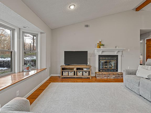 Nestled atop a scenic hill, this charming home offers a serene retreat surrounded by mature trees and a gently rolling yard. Step inside to discover a welcoming living room bathed in natural light from the large bay window, complemented by a cozy gas log fireplace and gleaming hardwood floors. The open-concept design seamlessly connects the living space to the dining area and a well-appointed kitchen, featuring abundant cabinetry, pantry, and plenty of room for culinary creativity. The expansive primary bedroom will accommodate a sitting area making this a true sanctuary, there is a generously sized closet and an updated ensuite bath with new tile, and a double vanity. There are two additional spacious bedrooms which feature nice size closet space and serviced by a second bath. Whether you're relaxing by the fireplace, enjoying family meals, or soaking up the warm weather on your screened porch, this home offers comfort and style in a peaceful setting.