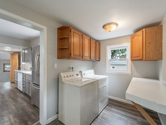 Come be amazed by everything this newly remodeled 1 1/2 story home has to offer. As you enter, you'll discover a convenient first-floor laundry room, ample storage in the pantry, and a spacious kitchen. The updated kitchen features modern finishes while retaining its timeless charm. The main floor includes two generously sized bedrooms, a full bathroom, and a cozy living/dining room. Large windows fill the space with natural light, highlighting the freshly painted interiors. From the inviting front porch, you can access the private upstairs living area (mother-in-law apartment) which includes its own laundry, kitchen, bathroom, bedroom, and living room. Outside, unwind on the roomy deck overlooking the fully fenced yard. Additional storage is available in the shed and the oversized one-car garage. ***New roof installed October 2024. ***The property is conveniently located close to schools, shopping, downtown and interstates. Schedule your tour today!