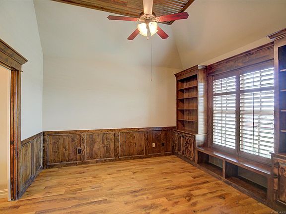 One owner custom built home. Spray foam insulated home with low utility bills. 3 bedrooms downstairs with office and 1 bedroom with private bath upstairs. Oversized 2 car side entry garage with safe room. Stained wood ceilings and beams in kitchen, office, and master bedroom. Master bath has walk in tiled shower, double sinks, and large master closet connected to laundry room. Covered back patio with access to master bedroom and dining room. Patio has wood burning fire-pit and hookup for TV.