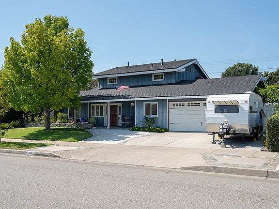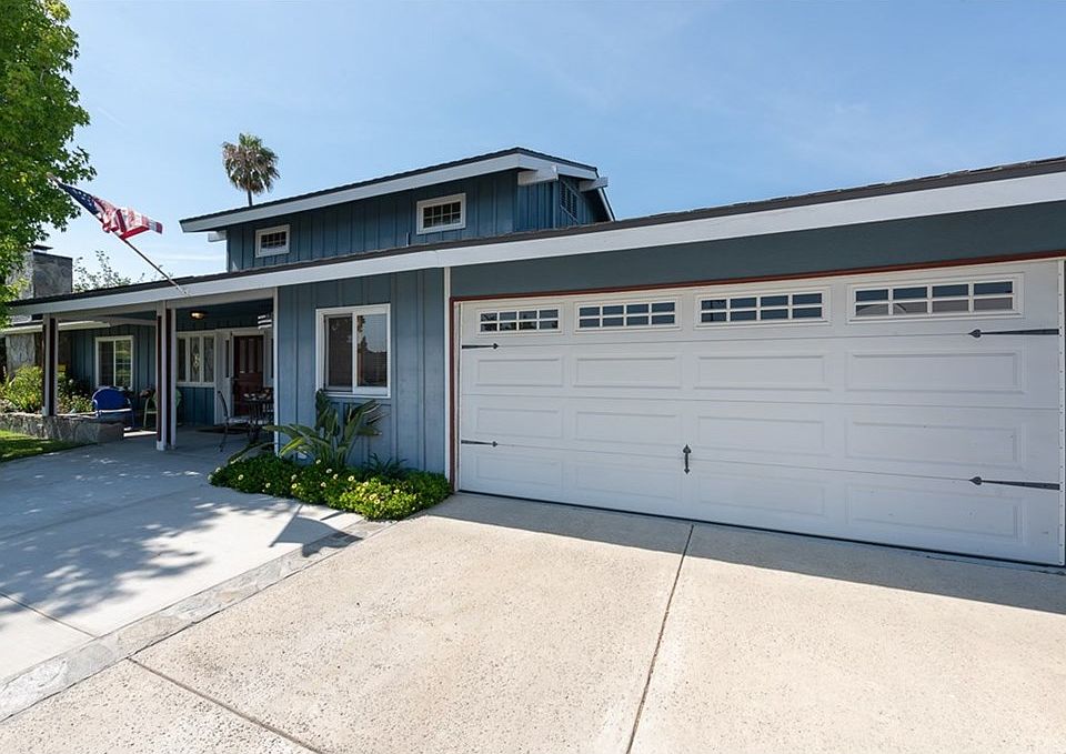 Through the dutch door of this highly upgraded home, you will find a soaring vaulted ceiling in the living room where light plays off of the flagstone fireplace & hearth as it reflects out onto the covered patio and expansive lawn. The raised formal dining room sweeps out into the living room & across the hallway you'll find the sunny kitchen with plank flooring, stainless appliances, corian counter tops, full butler's pantry & large dining area with a 12' wall of windows that slide open to view the volleyball pool, 8 person spa & garden walls. The laundry area is just off of the kitchen & steps away in the 2 1/2 car garage that provides plenty of storage on the perimeter and above. Three bedrooms are at the back of the house, one with a slider & vinyl flooring providing easy access to the pool, the others all with ceiling fans & 2" blinds. The hall bath has a double sink & tumbled travertine tub and shower surround. Upstairs is the master suite, also with vaulted ceilings, his and hers closets enclosed with mirrored doors, carpeted floors with the exception of the bath which features a claw foot soaking tub, travertine shower surround with rain and hand held hardware and a free standing converted wood cabinet with double sink & quartz counter top. Crown moulding & 4 inch baseboards in most rooms and wainscoting in the family room and back bedroom. All new double pane vinyl windows, wifi sprinkler controls, double AC units and many more improvements found in the supplement.