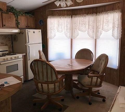 Cozy home in Safford Ranch. Must be 55 or older and be accepted by the park. Has new metal roof and gas furnace. New metal roof in 2017, Furnace & Water Heater. No cooler or A/C as the owner was a winter visitor and didn't need it. SPDS in Docs. Furniture is no longer in the home.