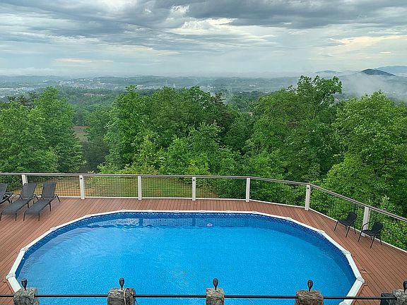 Sweeping views of Pigeon Forge surrounded by natural East Tennessee wilderness. Sky High in the Smoky Mountains, this home is one of the only geographic locations that brings you close to nature and a stone throw away from the great city of Pigeon Forge. Recently UPDATED Kitchen has to be seen. This ALL Brick built rancher has over 5 acres of land, a gleaming pool that also overlooks the city life, 4 BED/3 BATH, Open Living, soapstone wood burning fireplace, and inviting sunroom to relax in. This home also has a detached workshop, and the driveway was also built with privacy in mind. This home has everything needed for the Smoky Mountain Sky High lifestyle.