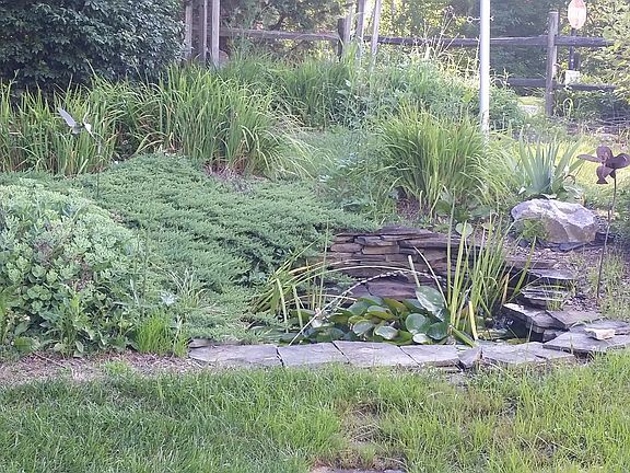 Immaculate 3BR+loft (potential 4th bedrm)/3.5 bath SFH home..2-story foyer..HW flooring..Custom barn sliding doors..Wood-burning FP..Eat-in kitchen w/ island & exit to extensively landscaped yard, pond & playhouse w/ electric..MB w/ cathedral ceiling, walk-in closet & large MBA w/ jacuzzi tub..Owned, income-generating solar panels..5-yr roof (2016)..New W/D (2014)..Surround sound,DR & pool table