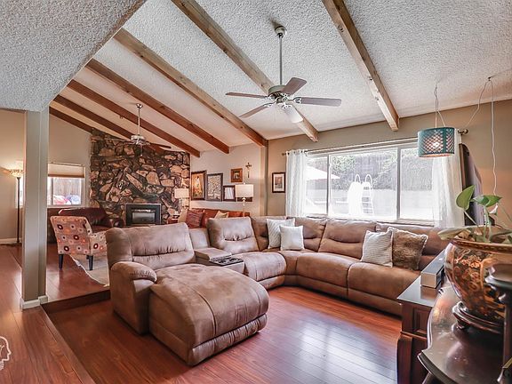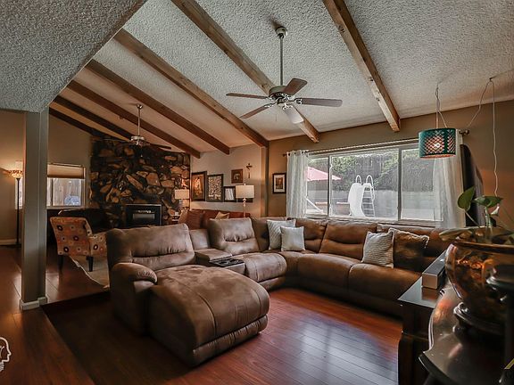 This home sits on a larger lot with mature landscaping to provide a ton of privacy. You'll notice the big windows in the dining room that provides character and natural light to such a beautiful home. The kitchen has been beautifully upgraded, there are two living spaces or formal dining room with a beautiful fireplace that can really be an accent wall. The exposed beams really tie the overall aesthetic together wonderfully. The backyard is landscaped with fruit bearing trees, plenty of outdoor entertaining space and a pool enclosed by a security gate. Come take a look!