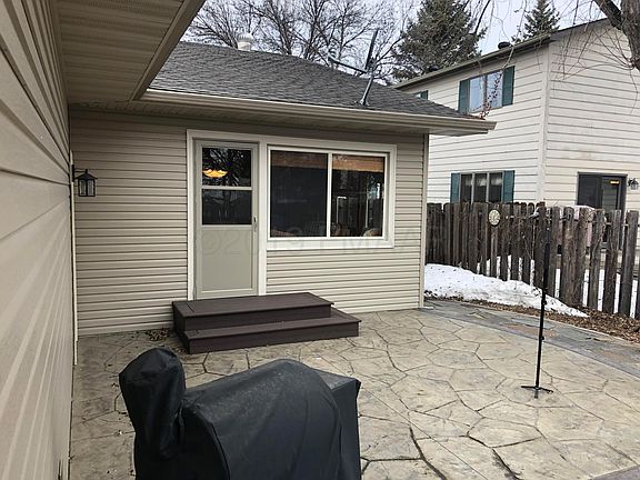 Spacious updated North Fargo 4 level split.With the following features, Great kitchen with dinette, attached 3 season porch leading out to custom stamped patio. Master bedroom has fire place to cuddle up to evenings and updated bath including jacuzzi tub. Real hard wood floors in the Formal dining room and living room.4 solar tubes through out the home. Garage has a space saver garage floor to keep the dirt out of your home, garage is heated has a new driveway and garage door and wired for generator back up, Newer windows through out home as well as seamless steel siding, storage shed. You will be impressed with the size of the family room and all the oak built ins and 2nd fireplace. You need to see this home to appreciate it.