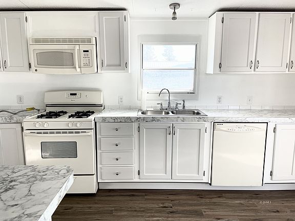 Come see this oversized 16 x 64, Manufactured Home on a Rented Lot, 55+ park with nice amenities including pool and clubhouse. This unit has been updated with new flooring ,countertops, paint & new ceiling fans. Large kitchen with breakfast bar and dining/breakfast area in front of bay windows. 2 bedroom, 2 bath with double sinks in master along with large walk-in shower. Covered carport area, home is squirted, nice covered porches on front & back. Storage shed with nice shelves for your storage needs. Park rent will be $325.00 monthly and will cover Clubhouse, Common Areas, Pool & Maintenance. Buyer must be approved by park - contact park manager for necessary paper work.