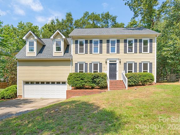 This charming 3-bedroom, 2-bath home offers a blend of comfort and style. Freshly painted throughout, the main floor boasts beautiful wood floors, a cozy living room with a fireplace, an office, a formal dining room, and a kitchen complete with a breakfast nook and pantry. The versatile bonus room, featuring its own entrance and full bath, could serve as a guest suite or additional bedroom. Upstairs, all bedrooms are conveniently located alongside the laundry room. The master suite includes a walk-in closet and direct access to the bonus room. The property also features a spacious garage with a workshop area and a large, private, wooded backyard with a shed. All located near Lake Wylie access, shopping, restaurants, and minutes from I-77.