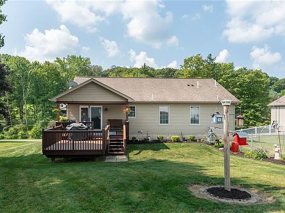 Custom built and meticulously well maintained home with a touch of peaceful seclusion. The impressive driveway offers plenty of parking for guests or extra vehicles. The oversized garage can comfortably fit 2 cars and still have plenty of room for storage or a hobby area. The vaulted living room ceiling magnifies the already spacious room that spills into the formal dining room. Sliding glass doors lead you onto the back two tiered deck that overlooks the wonderfully manicured back lawn. The kitchen is spacious and is accented but a modern backsplash and sleek stainless steel appliances along with the intimate corner dining area. The master suite has a beautifully remodeled walk in shower and double sink. In the lower level you will enjoy the extremely large finished area that can be easily sectioned off into two different living spaces, office or hobby room. The half bath in the lower level has plumbing ready to covert into a full bath if you choose.