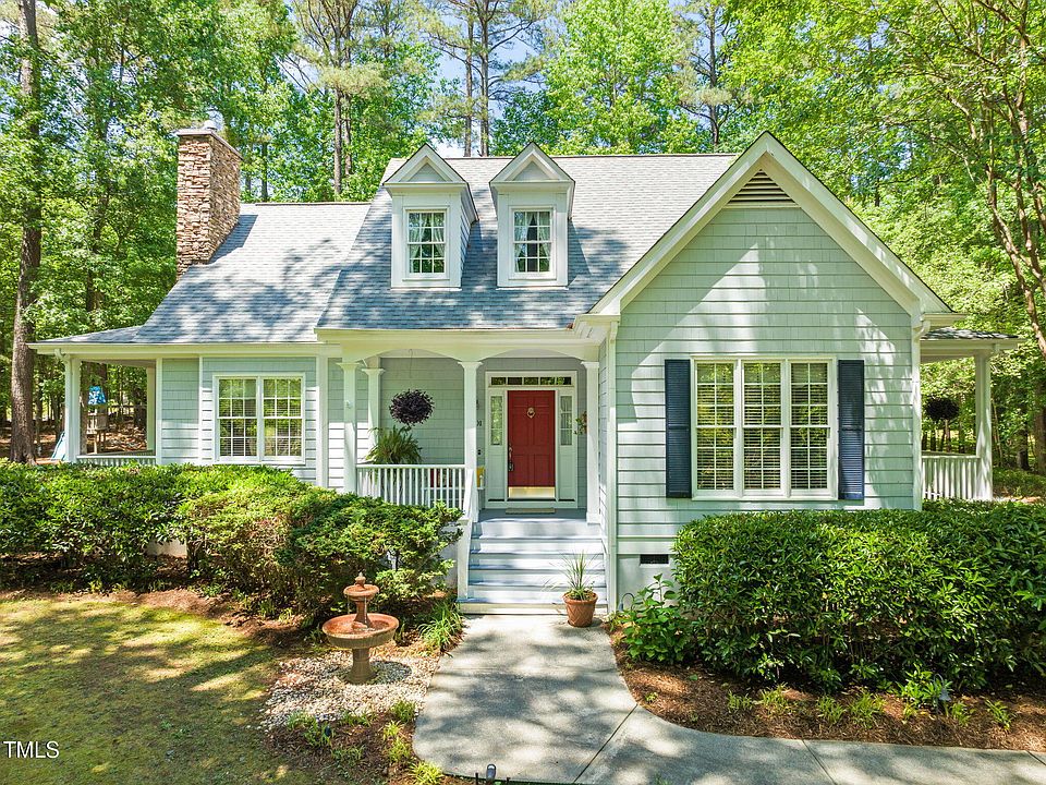 Sellers offering $10,000 buyer credit for loan buy down, cosmetic changes or closing costs. Unbeatable home and lot! This Wake Forest gem features a sought-after first-floor primary suite and is nestled on a stunning .92-acre lot that offers privacy, mature landscaping, and tranquility in every direction. The welcoming family room showcases ceiling beams and a gorgeous stacked stone gas log fireplace, creating a cozy yet elegant gathering space. The spacious kitchen features smooth top range, tons of cabinet and counter space, eat-in area and access to side porch with view of backyard play area—perfect for everyday living and entertaining. Upstairs, two generously sized bedrooms sit on opposite sides of the hall with a shared full bath between, plus a large bonus room with wet bar at the rear and tons of walk-in storage. Enjoy serene views from every window and take in the peaceful surroundings from any of the four inviting porches. Added features include a 2020 roof, encapsulated crawlspace with dehumidifier and portable generator wired for the first floor. Septic pumped in 2025, all systems recently serviced and the swing set conveys. Thoughtfully designed and impeccably maintained, this is more than just a house—it's the place you'll love to call home.