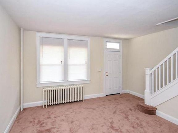Ready for Immediate availability ! Large porch front end unit features sizeable eat-in kitchen walks out to patio and yard perfect for summertime grilling. 3 Bedrooms upstairs with updated bath. Unfinished Full basement with high ceilings for additional space and storage. Call directly listed below Renter responsible for Utilities and Water