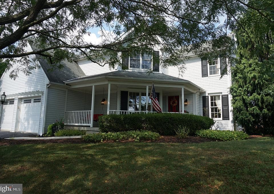 Not your standard floor plan, but a smart and comfortable twist. Bonus: This home has been updated and professionally dressed! Start with a kitchen that makes a statement: custom cabinetry and lighting, granite counters, island, and stainless steel appliances. Kitchen extends to a nicely sized breakfast room with bay windows with rear garden deck view. Breakfast room also includes stately custom built storage chest. Spacious rear family room off kitchen is open with expanding windows to rear gardens and 16x22 deck. Beautiful hardwood flooring graces formal dining room and living room with fireplace. Upper level holds master suite with whirlpool tub and separate 4' shower. Bedroom 2 features cozy corner window seat; bedroom 3, currently used as office, features a ceiling compass motif. 2nd floor laundry room includes helpful shelving in this busy area with room for ironing! Look for custom closet shelving in master and bedroom 3 closets. All window treatments remain and family room window shades are motorized; master bedroom shades are darkening for sleep comfort. Appreciate basement waterproofing system, double hung Andersen windows, and dehumidifier attached to heat pump. Lower level 22x13 room is partially finished. A few touches will make a playroom, office, hobby or work-out room. Come sit a spell on the wrap-around front porch swing or rear deck. Backyard is mostly fenced for privacy. Walking trail begins at rear corner of yard! Welcome home!