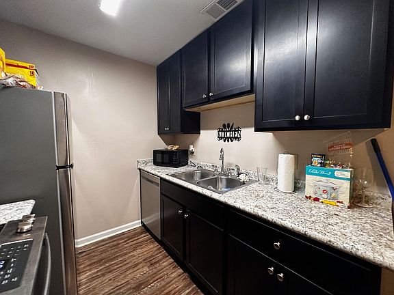 Cozy 1 bedroom/1 bath end unit in a triplex - recently remodeled with new wood-style flooring (no carpet!), fresh paint, new kitchen & bath cabinets, all new lighting and roomy feel inside. In-unit laundry with washer and dryer included! A spacious bedroom is located at the back of the home with ample closet space and a back door to access the small rear patio area. Sorry, no indoor smoking of any kind allowed, and no pets preferred. Basic lawn care is included. Directions: The triplex is on the corner of Mission Rd and Hartsfield Rd. Basic lawn care is included.