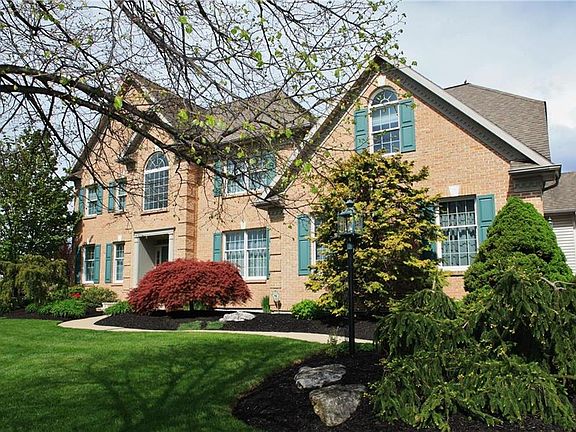 Set on a prime lot in the very desirable Valley Green community, this wonderful home stands apart from the ordinary. This Colonial Style home in the heart of Center Valley is filled with timeless architectural details. Pristine Wood Floors, high ceilings, crown molding & trim details accent the open floor plan. Granite counters, Kitchen secretary, large center island & pantry are found in the kitchen. Cathedral ceiling, gas fireplace & over sized windows bring light into the family room that overlooks the stunning rear yard. The luxurious master suite boasts tray ceiling, walk-in closets, a jetted tub and separate areas for both a study and an office. The lower level offers a family game room as well as a large utility/storage area. Relax under the awning on the deck, overlooking the preserved wetlands & gardens. Perfectly positioned for outdoor entertaining with access to the walking path for a neighborhood stroll. Natural gas, public water/sewer & Southern Lehigh schools.