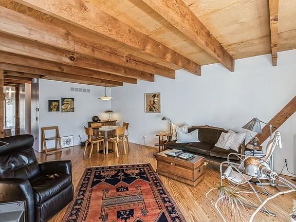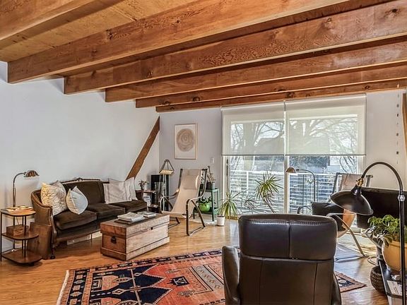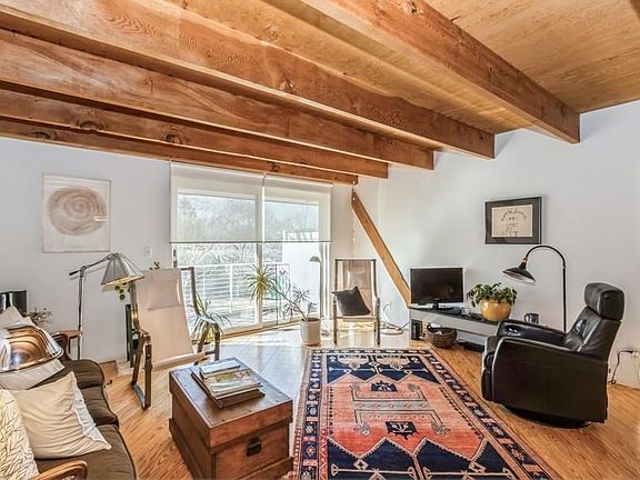 ARCHITECTURALLY TRANSFORMED turn-of-the-century dairy barn converted into 5 extraordinary townhomes. The notable barn-like structure with gambrel roof, cupolas and yellow painted wood siding is surrounded by lovely common gardens and mature trees. The interior of these homes have rustic modern ambience with open spaces, natural light, exposed wood beams and rafters and beautiful reclaimed pine flooring. The eat-in kitchen with new appliances, new tiled backsplash and new lighting highlights a large circular window that overlooks green space and allows for meditative mornings. A spacious living room and dining room area has access to the newly renovated deck overlooking private grounds. Feel an expanse of height and space throughout with the cathedral ceiling in the primary bedroom and the skylight in the 3rd level loft. The lower level bonus room can be used as a non-conforming bedroom or study. Rare opportunity to be a part of this one-of-a-kind condominium. *24 hr response time for all offers