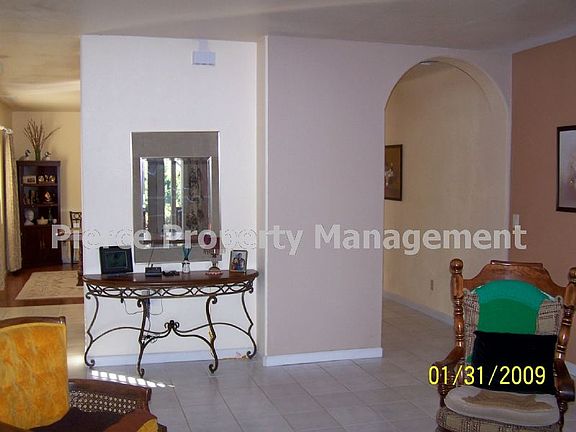 Located on 1/2 acre, this spacious 4 bedroom 3 bath home also has a den/TV room, dining room and family room. All tile floors, French doors to master bedroom as well as access to a deck from the master bedroom. Cozy living room with wood fireplace. Can have separate guest suite with own entrance and 2 bedrooms. 2 car garage with garage opener, ceiling fans and more. Home is handicap accessible. Owner prefers year lease. Small pet negotiable with approval, deposit and $25 per month additional rent. Showing by appointment. Please do not disturb tenants.