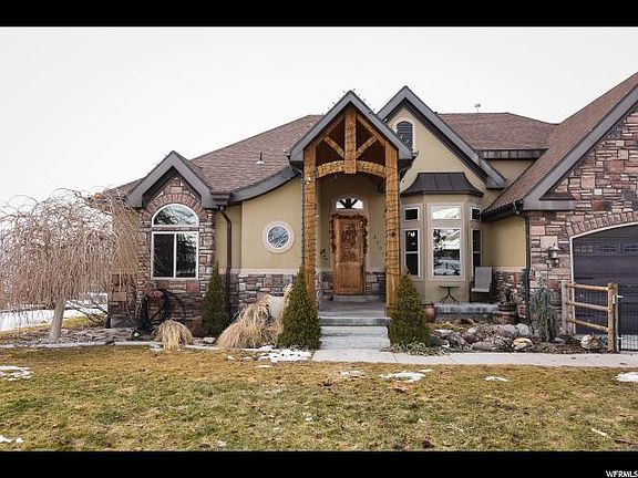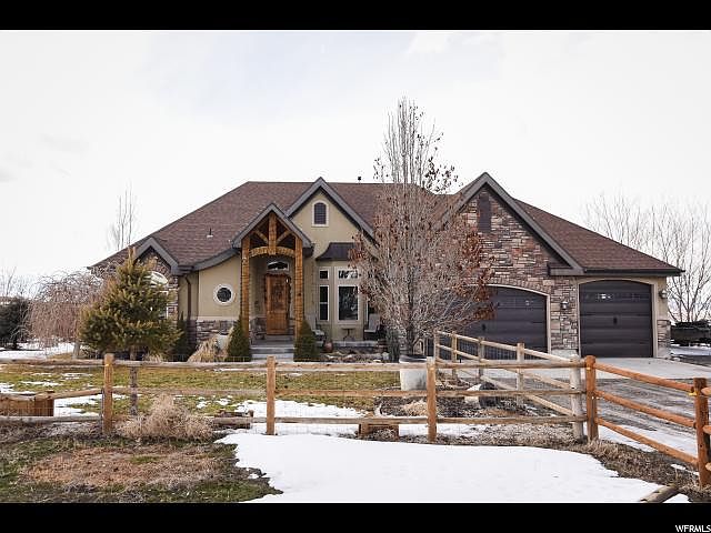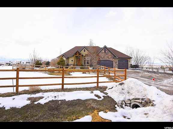 Amazing Rambler on 4.71 acre Horse Property Lot with Own Well. This Custom Home Features 6 Bedrooms/5 Bathrooms and 4 Car Garage. The Heart of the Home is the Gourmet Kitchen with Double Ovens, Concrete Counter tops and sinks, Gas Counter Top Range with Vented Hood. The Large Vaulted Great Room with Stoned Fireplace with Pellet Stove. Large Covered Deck Awaits you to enjoy the Beautiful Sunsets and Sit and Relax and Enjoy the Views. Home features a Mother in Law apt area that has a pellet stove, walkout entrance, sink and dining area (no stove) and its own private bedroom and bath. Additional Family Room or Game/Theater area is ready for you to Finish to your Desires. No Detail has been missed with Hand Carved Front Door, Slate Tile, Wood Doors & Trim and Hardwood Floors. 40' x 60' Barn is ready for you to finish. Property is fenced with amazing views of the valley, mountain and lake. Yard Landscaping is complete with fire pit, horse shoes and volleyball area, sprinklers and fruit trees. Well rights are 2 acre feet of water. Come See This Home Today! Square footage figures are provided as a courtesy estimate only. Buyer is advised to obtain an independent measurement.