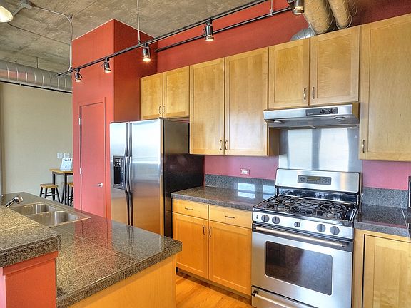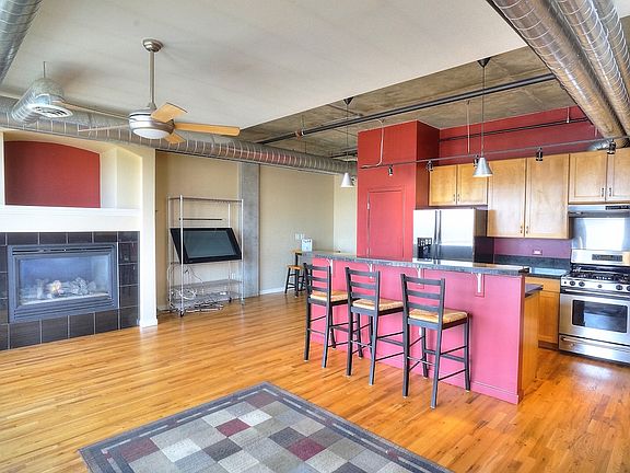 Great Opportunity! Quick Possession... This lovely loft is located in the heart of Highlands East. Spectacular views of the skyline, sports event centers, and mountains. Quality construction, Concrete/Steel/Brick & Stucco, 10'5" ceilings with exposed mechanical duct work. Unit is spacious open and bright. Refinished wood floors, new sliding patio doors, large deck with gas grill. The gourmet kitchen has granite counters, kitchen island/breakfast bar, stainless steel appliances, pantry. Walk-in closets (custom organizers), gas log fireplace, underground parking and storage.